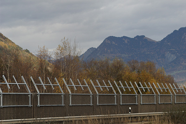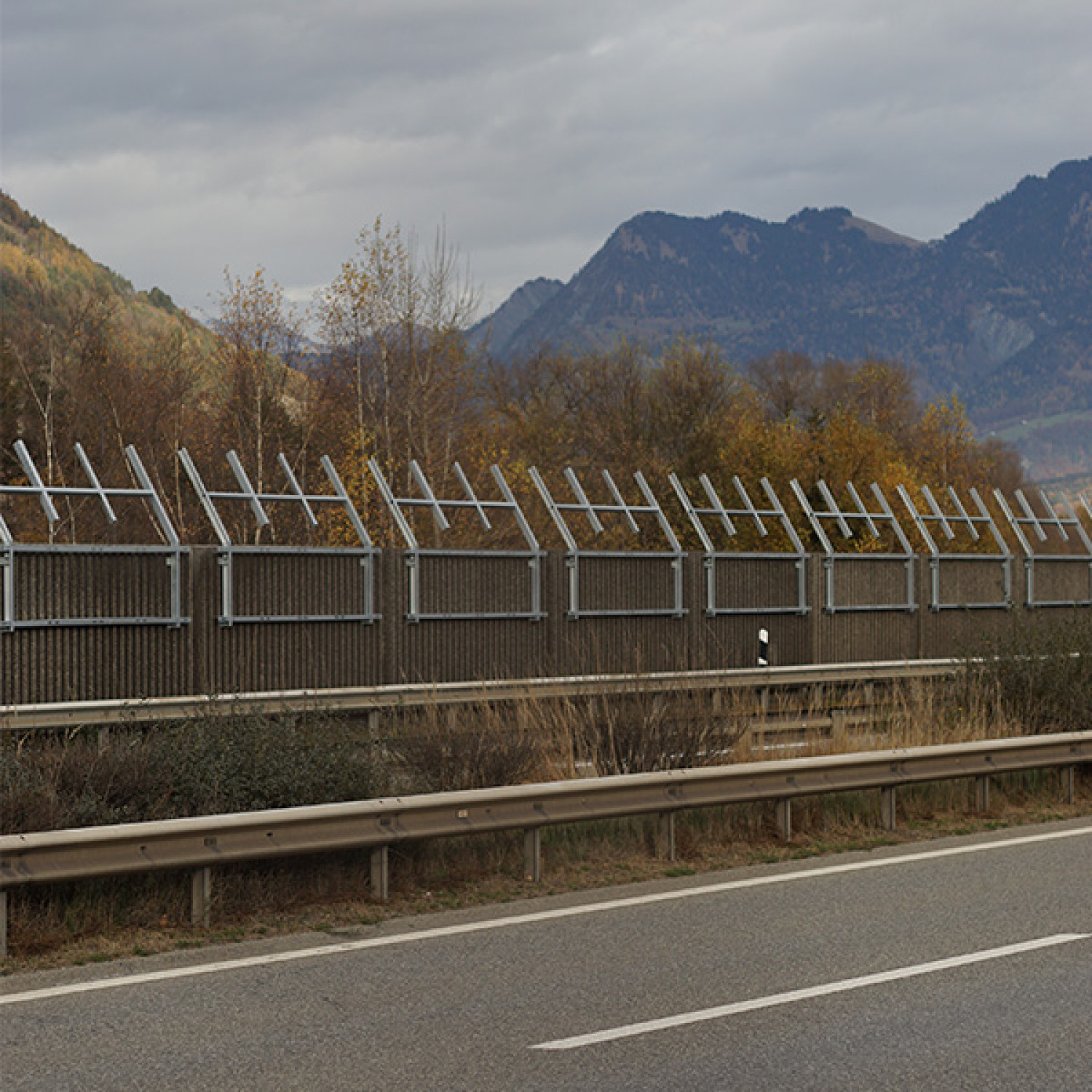 Entlang der Lärmschutzwand an der Autobahn A13 auf Höhe Felsberg ist die Unterkonstruktion für die Erweiterung der Solaranlage montiert. Die Montage der Solarpanels erfolgt voraussichtlich anfangs 2026.